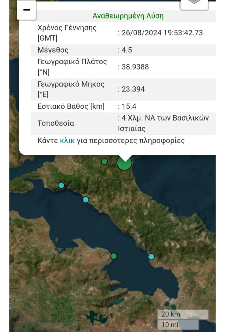 Σεισμική δόνηση ΝΑ Βασιλικών Ιστιαίας
