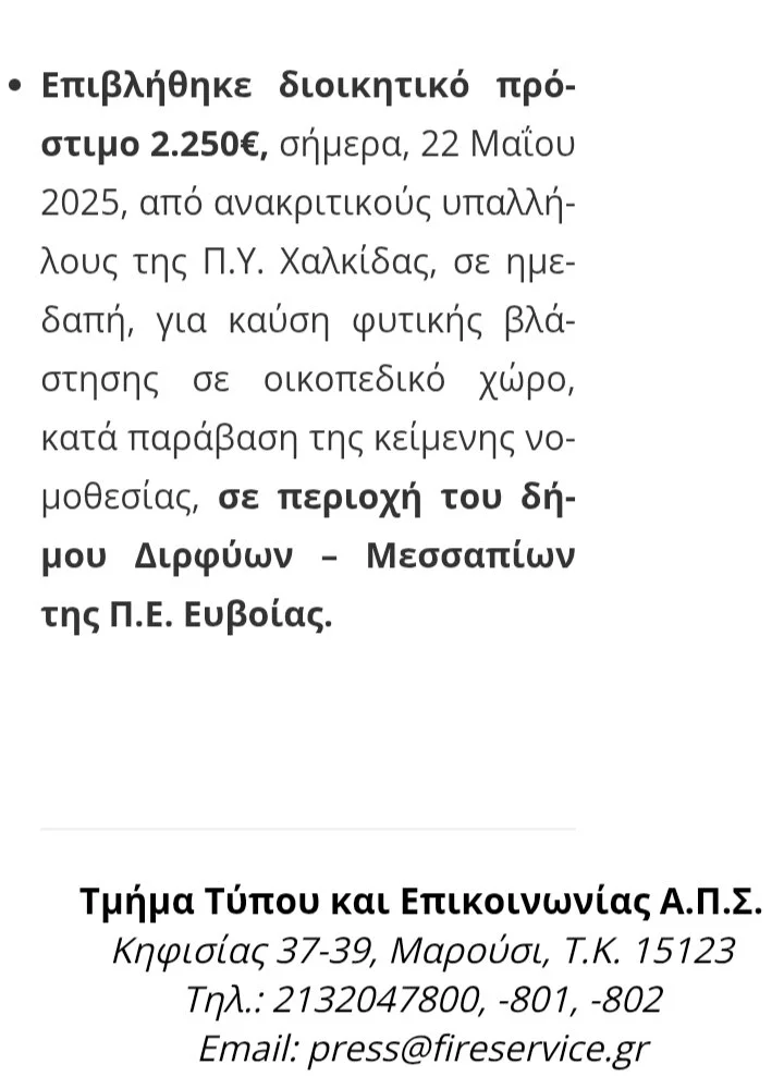 Σύλληψη και πρόστιμα για πρόκληση πυρκαγιών σε Αλμυροπόταμο & Δήμο Διρφύων Μεσσαπίων, Εύβοιας φίλοι.