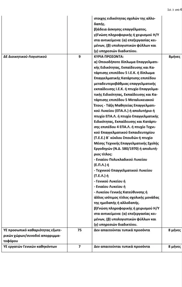 Ανακοίνωση για την πρόσληψη προσωπικού 8μηνης διάρκειας