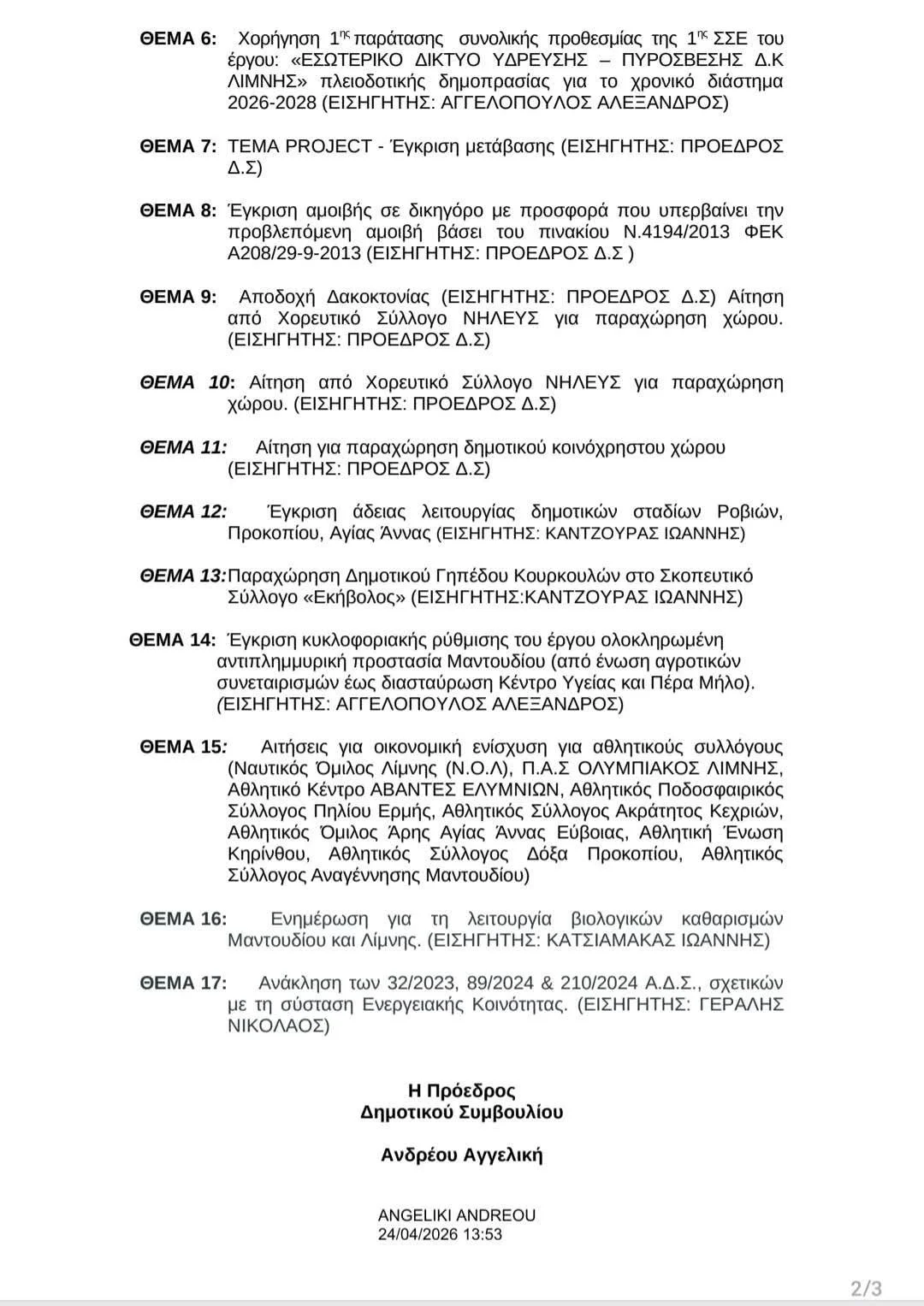 28/4/'26 φλέγοντα θέματα στη Λίμνη