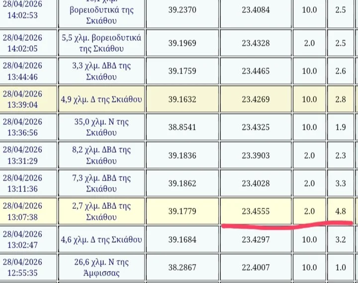 Σεισμική ακολουθία σήμερα το μεσημέρι στη θαλάσσια περιοχή βορειοδυτικά της Σκιάθου, Εύβοιας φίλοι.