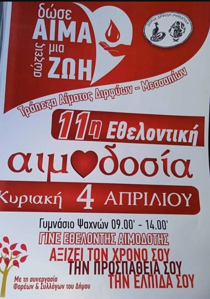 Εθελοντική αιμοδοσία σε Ψαχνά και Κεχριές