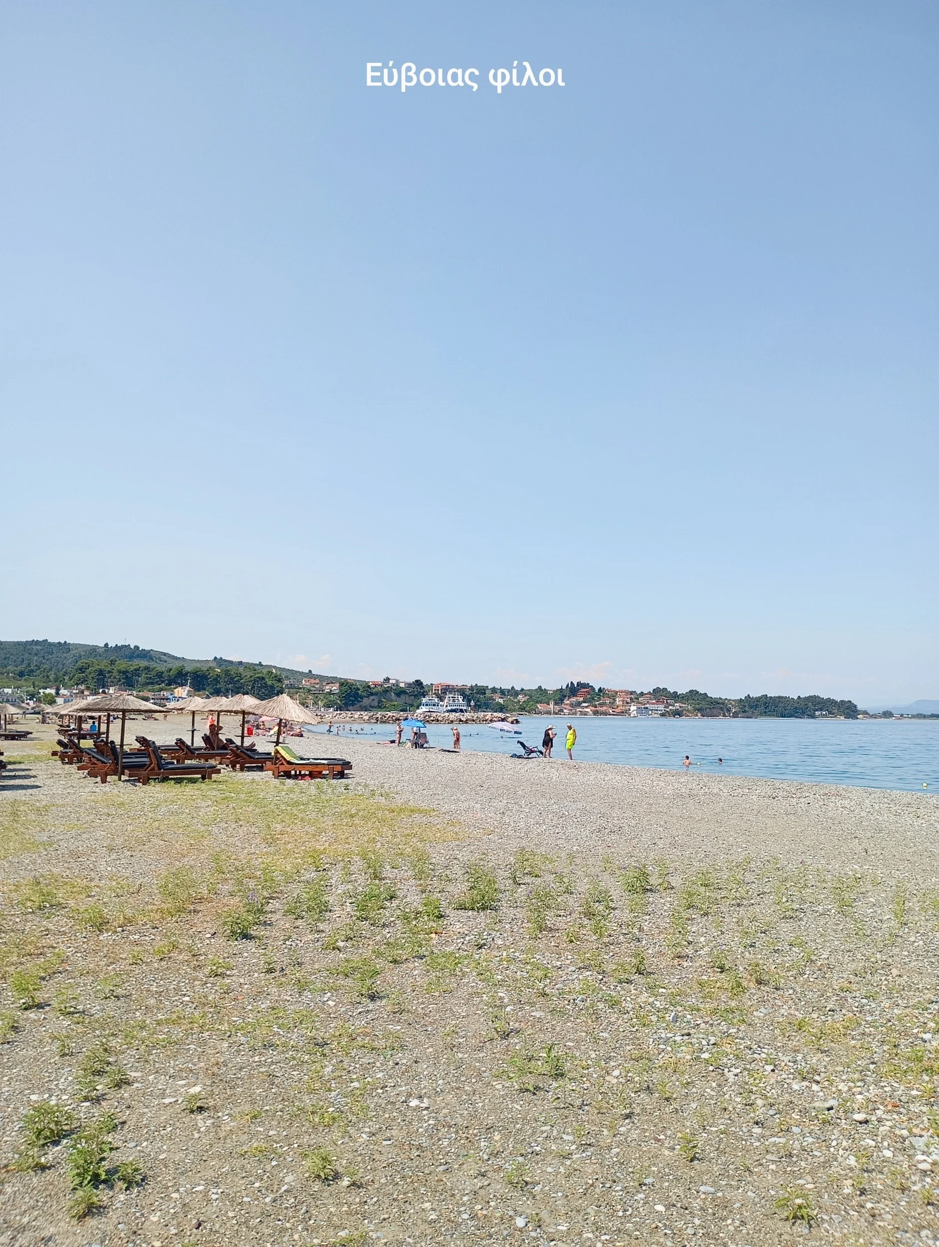 Απέραντη η όμορφη και οργανωμένη παραλία του, σχεδόν 5 χιλιομέτρων, Εύβοιας φίλοι, με αμμουδιά, βοτσαλάκι ή και πιο χοντρό βότσαλο
