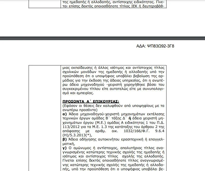 Άδεια Χειριστή Μηχανήματος Έργου.