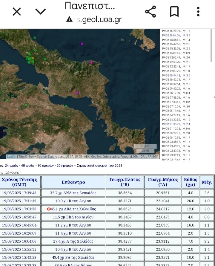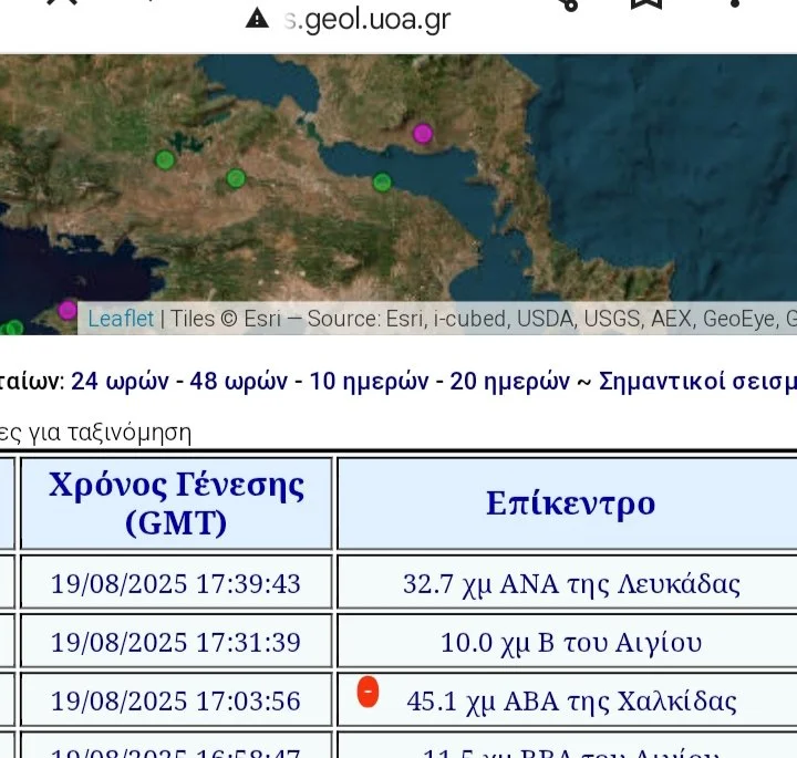 Οι ενδείξεις του Γεωδυναμικού Ινστιτούτου Αθηνών: