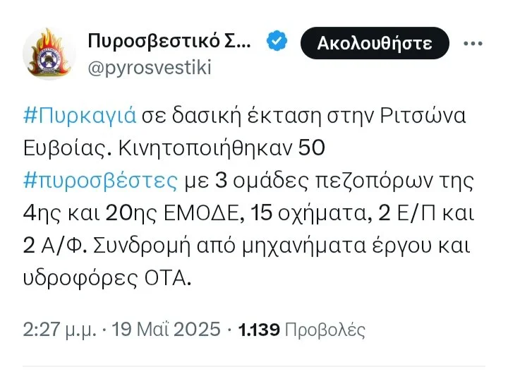 Η ανακοίνωση της Πυροσβεστικής Εύβοιας φίλοι..